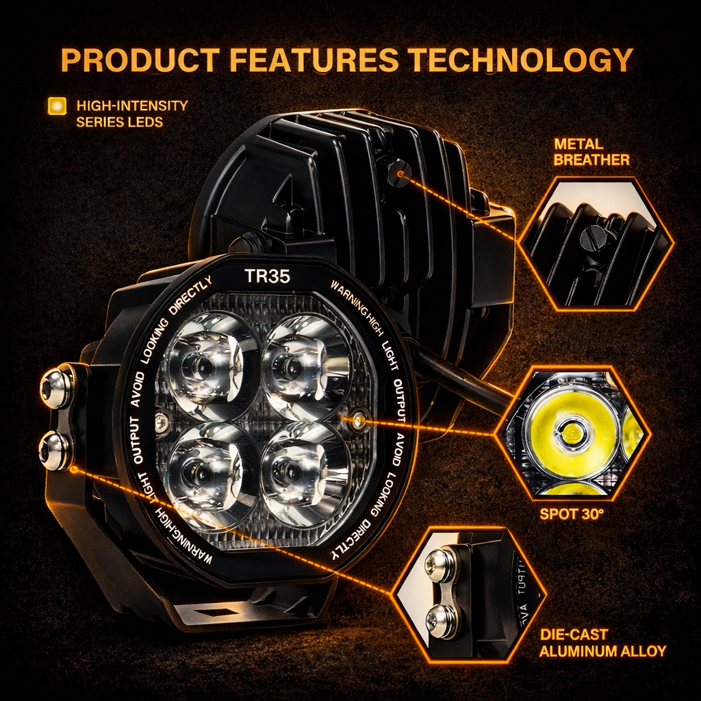 Integrated DRL enhances daytime visibility while the main beam delivers focused lighting at night no extra lights, no cluttered setups.
