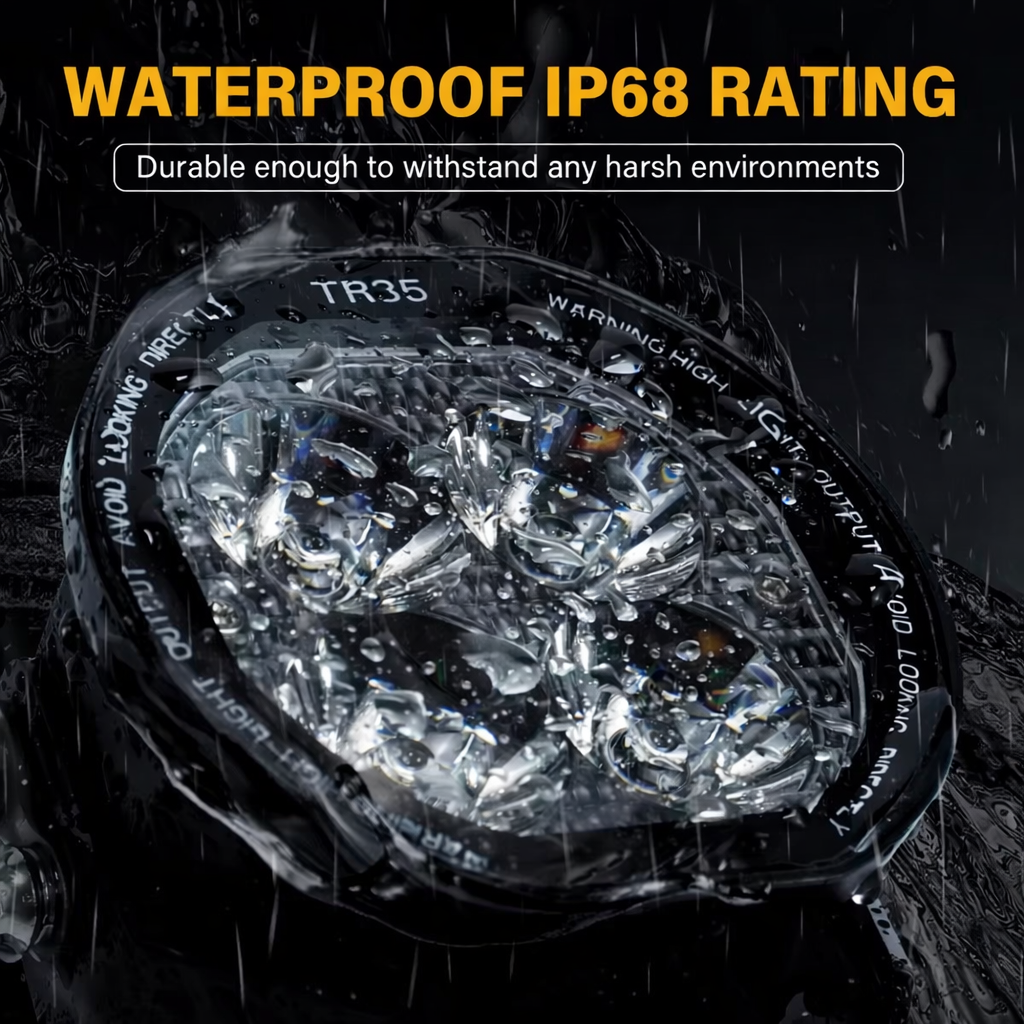 Yes, they feature IP68 & IP69K waterproof ratings, making them suitable for rain, mud, snow, dust, and even high-pressure washing.